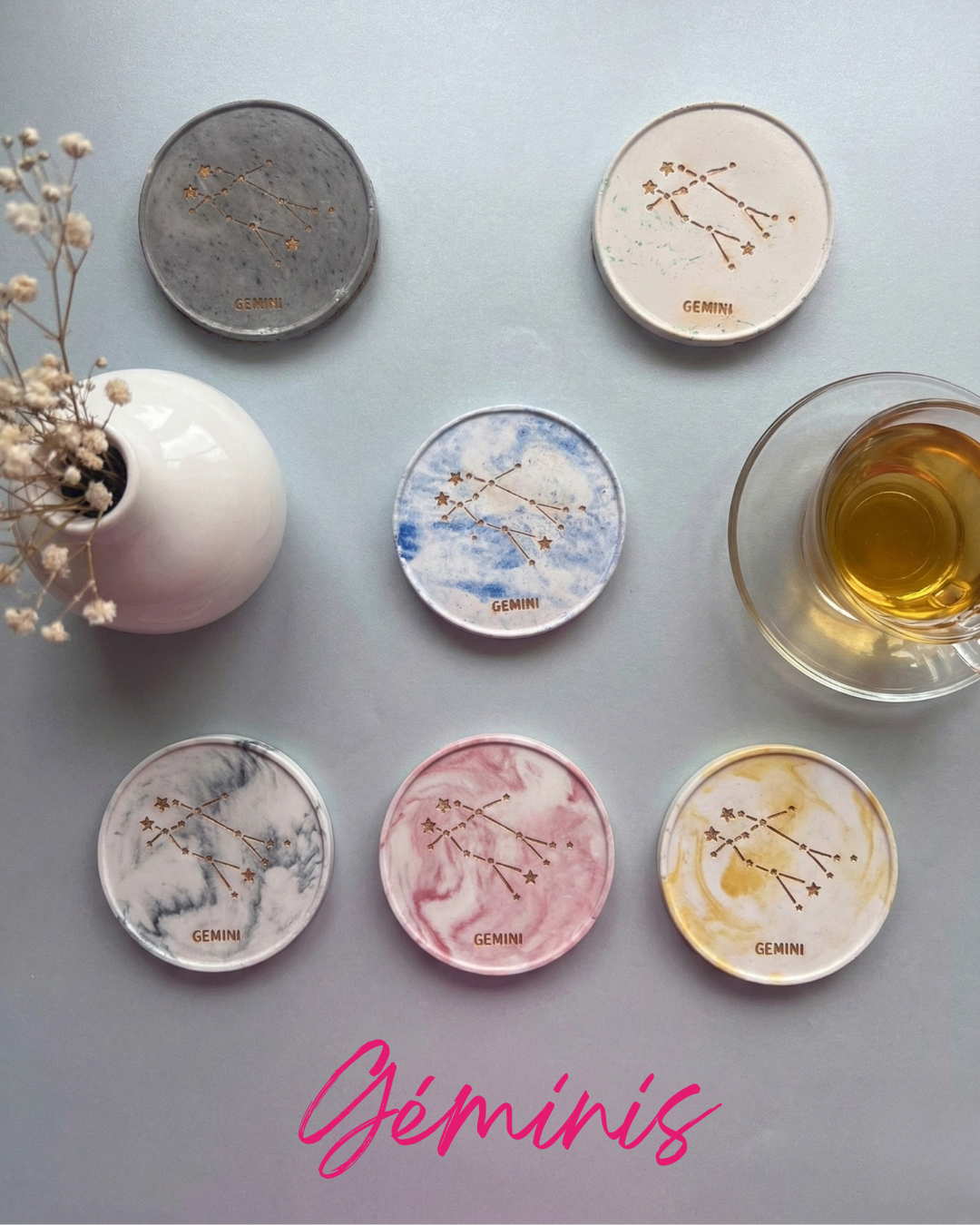 Esencia Astral: El detalle que tu mesa necesita. ✨ Piezas únicas de yeso marmolado con base de corcho que protegen y decoran.